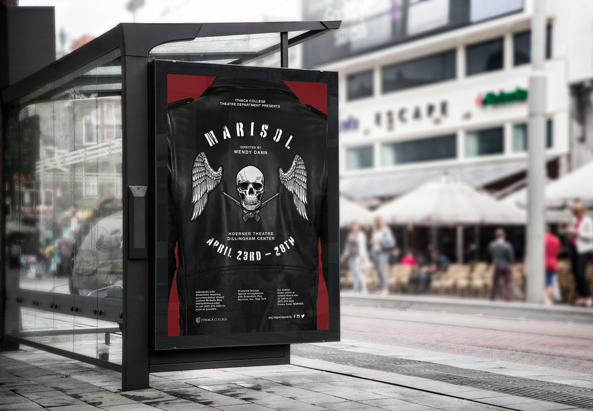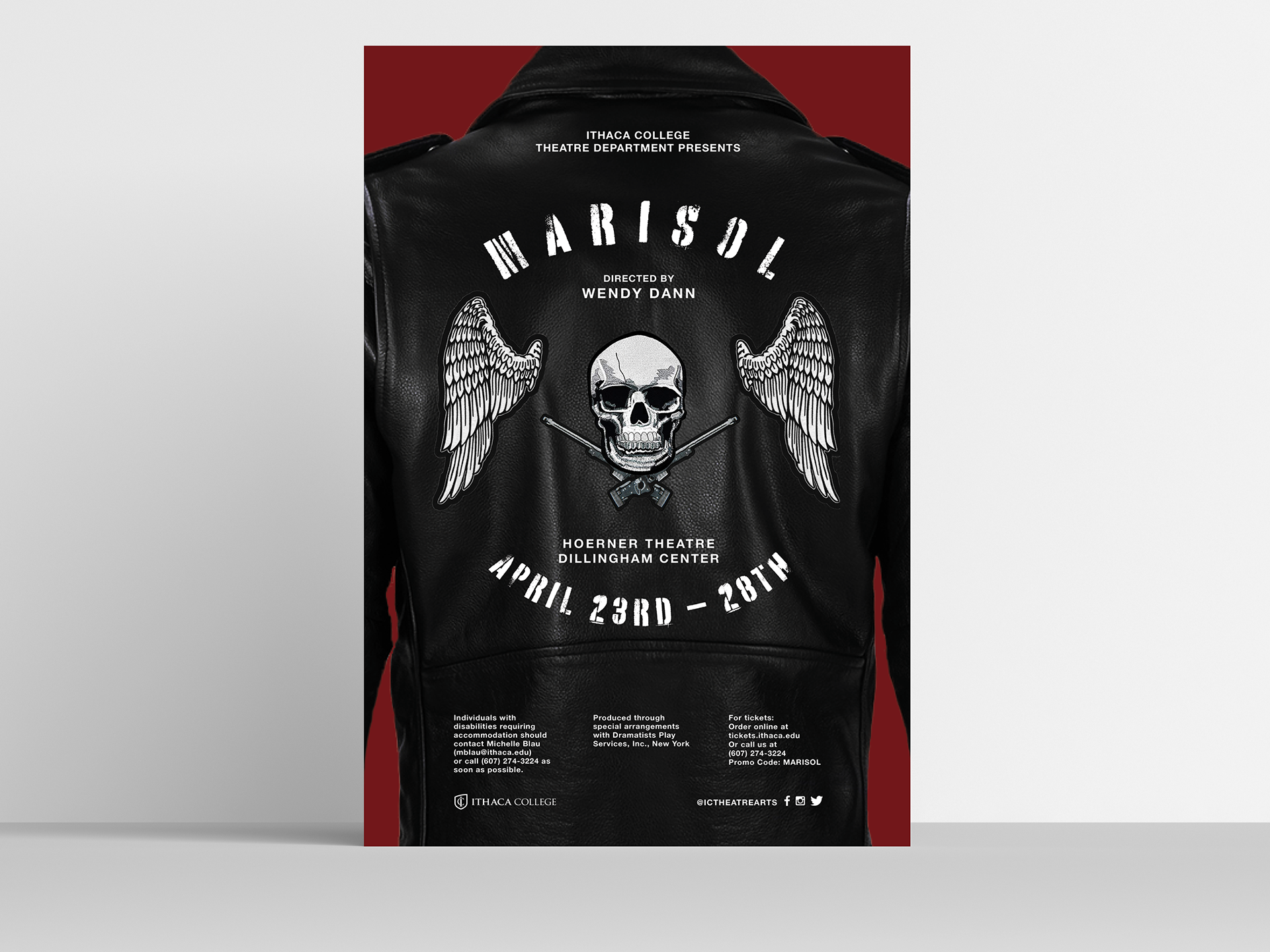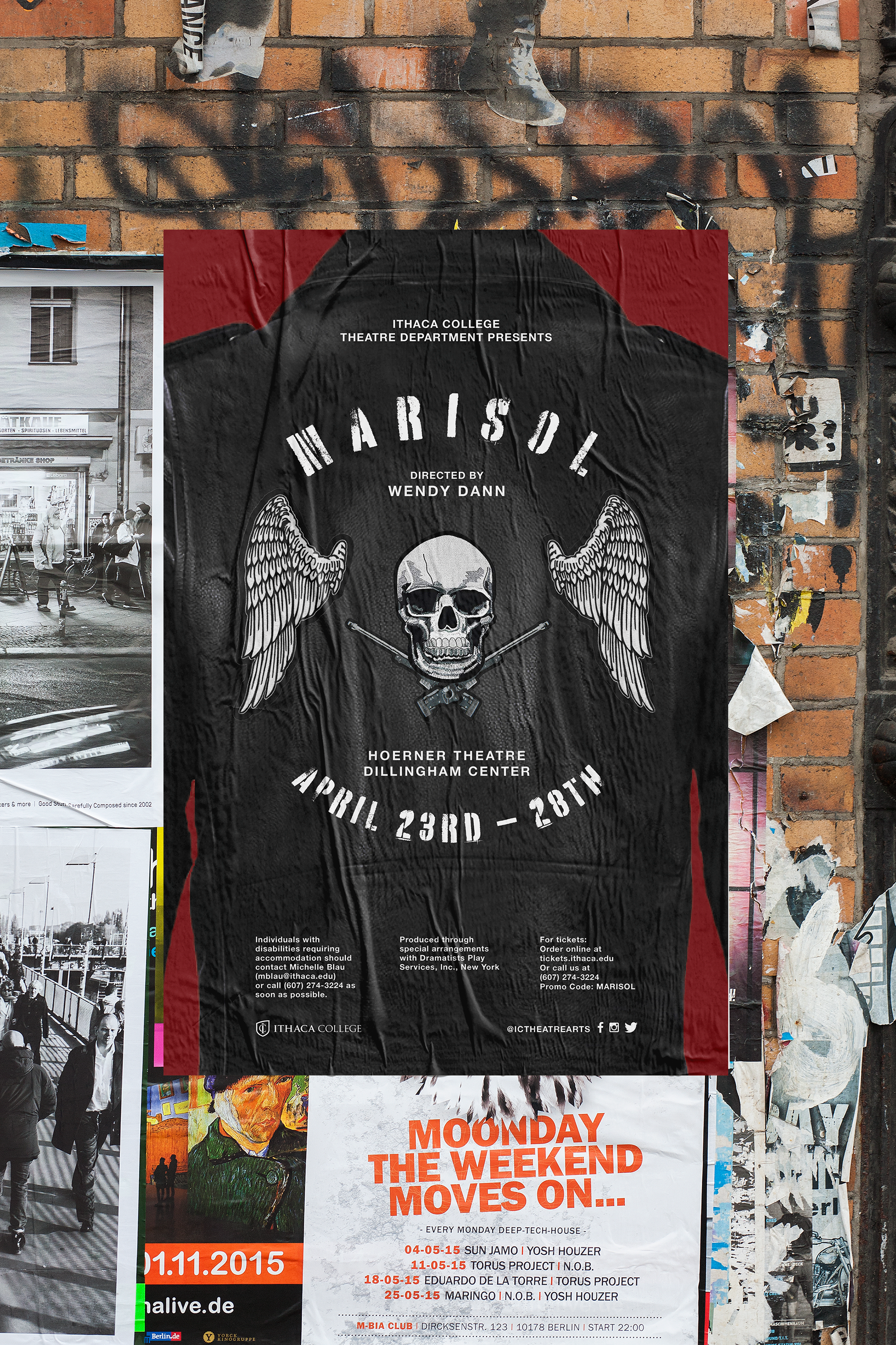 A fully composited re-imagining poster for Ithaca College's theatre production of Marisol, by playwright José Rivera.